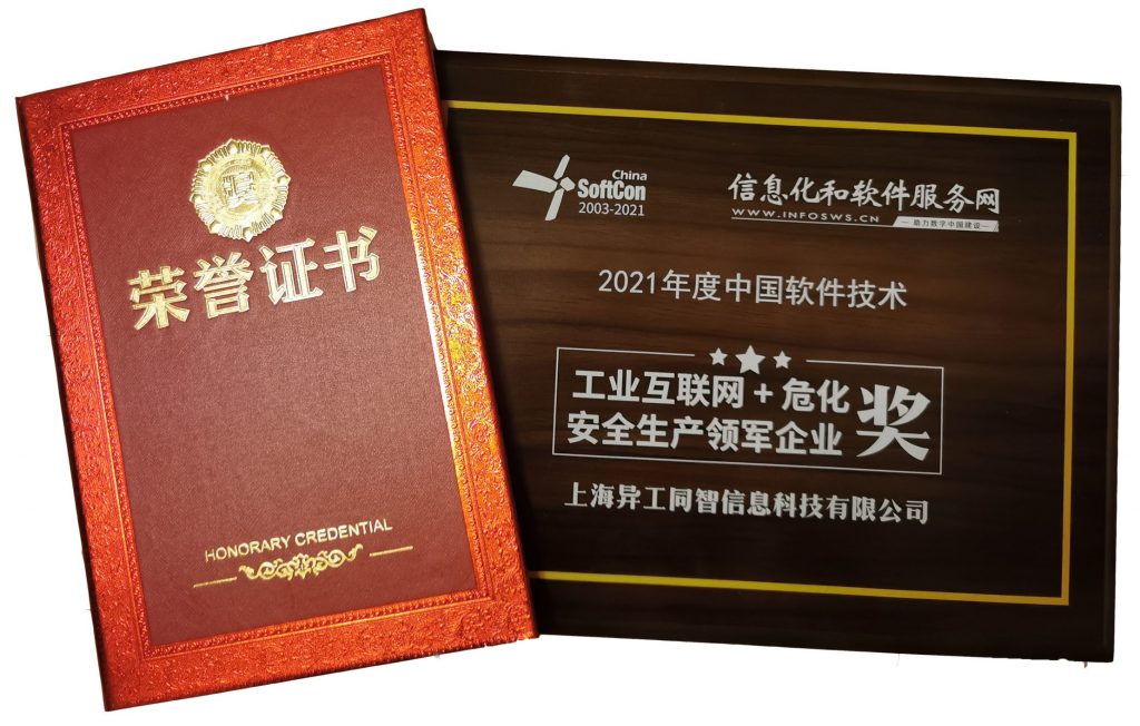 會上頒布了2021中國軟件技術(shù)創(chuàng)新標(biāo)桿企業(yè)及個人、創(chuàng)新標(biāo)桿軟件產(chǎn)品、解決方案、應(yīng)用服務(wù)等獎項評選結(jié)果。上海異工同智信息科技有限公司榮獲技術(shù)創(chuàng)新標(biāo)桿企業(yè)獎項——工業(yè)互聯(lián)網(wǎng)+?;踩a(chǎn)領(lǐng)軍企業(yè)。