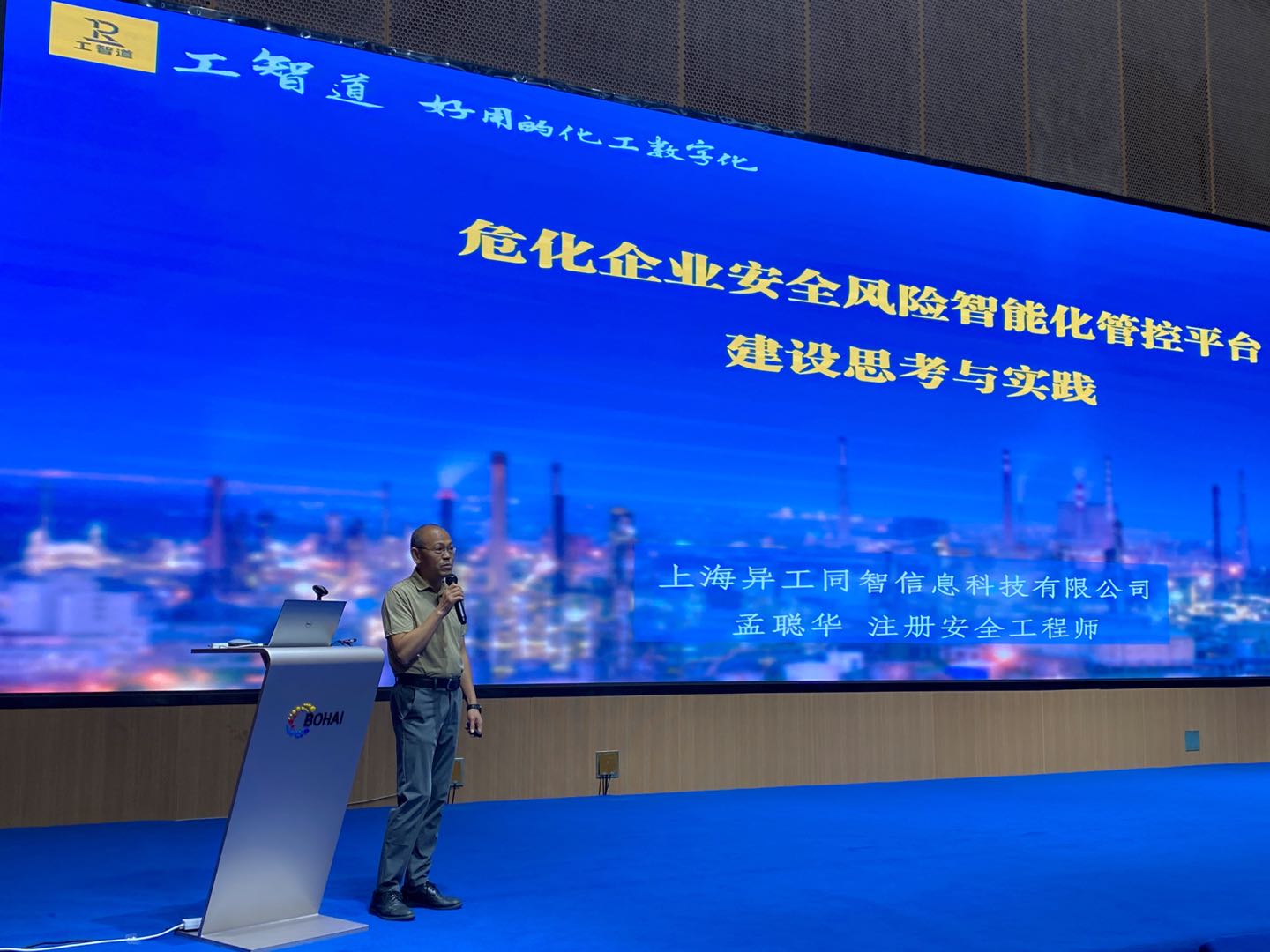 大會交流環(huán)節(jié),工智道南方區(qū)銷售總監(jiān)、注冊安全工程師孟聰華以《?;髽I(yè)安全風(fēng)險智能化管控平臺建設(shè)思考與實踐》為題做了分享。