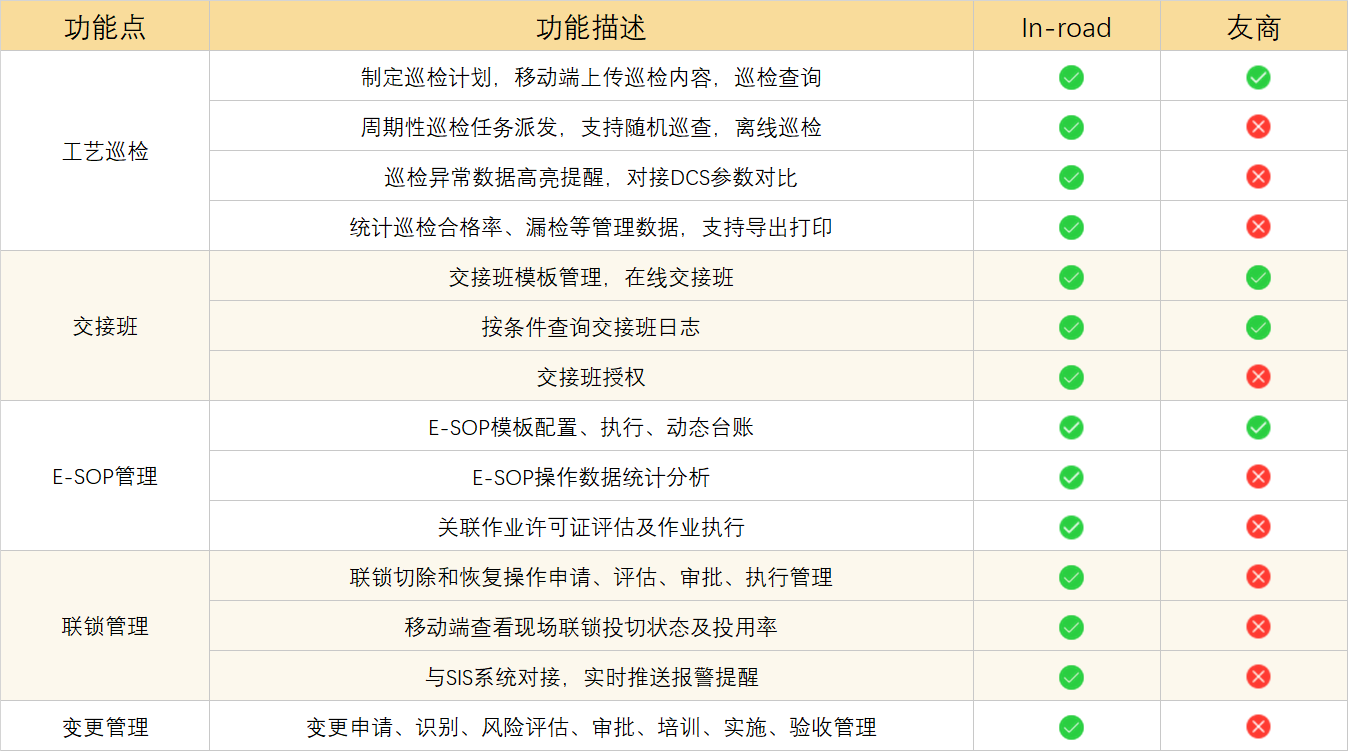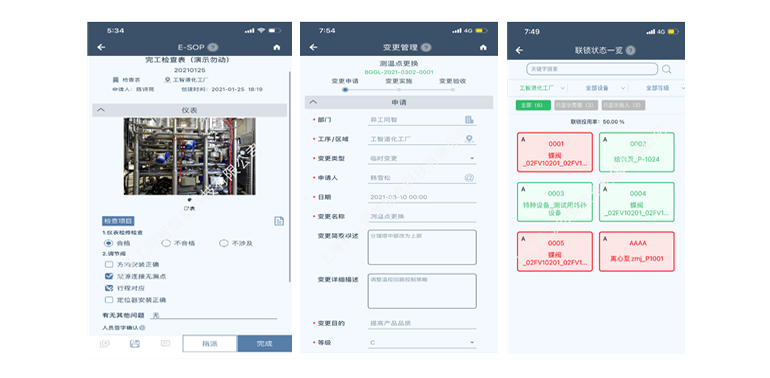 工智道工藝管理系統幫助企業(yè)將先進的標準操作規(guī)程執(zhí)行落地;全流程電子化監(jiān)管變更過程,控制變更風險;實時掌握聯鎖狀態(tài)、投用率,提升聯鎖現場管控及預警;根據崗位自動抓取交接班信息匯總生產簡報,滿足交接班業(yè)務中流程合規(guī)、信息匯總和過程記錄的管理需求。