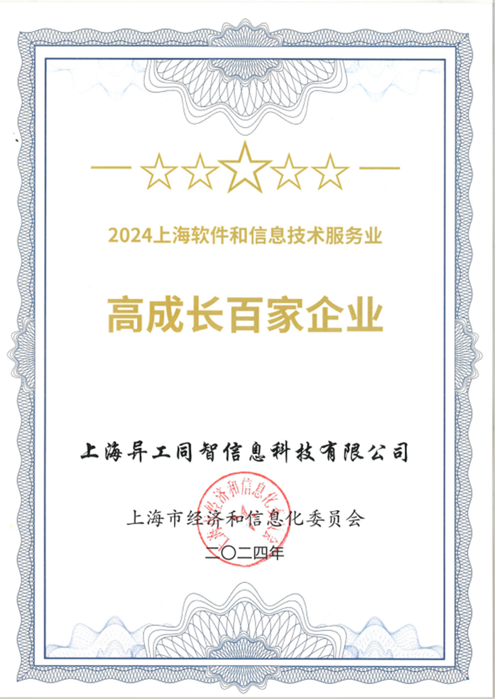 12月19日,上海市經(jīng)濟和信息化委員會發(fā)布了 2024 上海軟件和信息技術(shù)服務業(yè) “雙百” 名單,異工同智 – 工智道憑借在化工數(shù)字化領(lǐng)域的深厚積累與強勁發(fā)展勢頭,成功入選 “上海軟件和信息技術(shù)服務業(yè)高成長百家企業(yè)” 榜單,位列第 35 名。