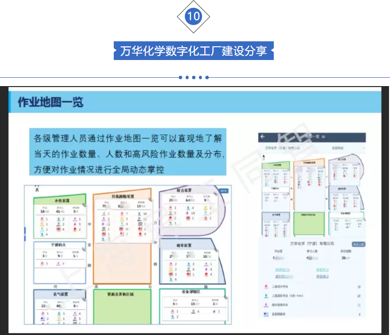 萬華化學(xué)(寧波)有限公司分享了“PTW電子化系統(tǒng)建設(shè)經(jīng)驗“,融合《GB30871-2014化學(xué)品生產(chǎn)單位特殊作業(yè)安全規(guī)范》,融入行業(yè)先進管理經(jīng)驗,通過流程優(yōu)化將現(xiàn)有作業(yè)申請單、特殊作業(yè)許可證和安全交底單業(yè)務(wù)內(nèi)容融合,搭建標準化的安全作業(yè)許可電子化業(yè)務(wù)流程(電子作業(yè)票),實現(xiàn)八大票證的快速審批、全業(yè)務(wù)覆蓋、高標準評價體系、安全風(fēng)險全局管控的、可視化、標準化的作業(yè)管理,提高作業(yè)效率。